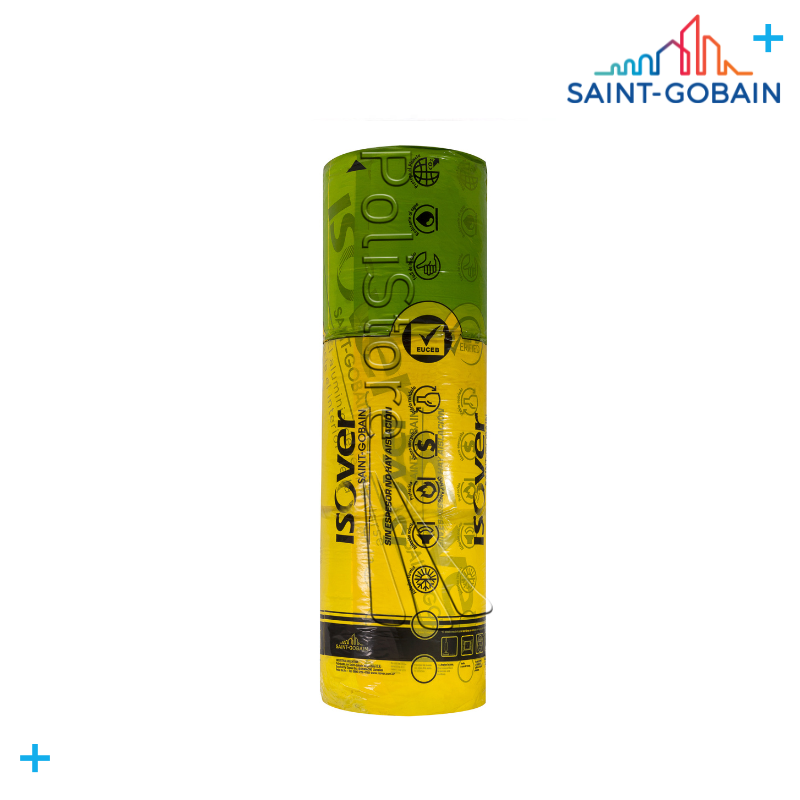 Fieltro de lana de vidrio hidrorepelente Isover revestido en una de sus caras con fóil de aluminio liso que actúa como barrera de vapor, especialmente diseñado para ser instalado en muros, cortado especialmente para ser colocado entre montantes.